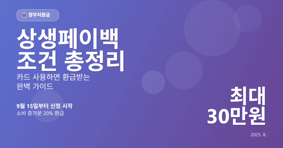 "작년보다 카드 많이 썼는데 돈을 돌려받을 수 있다고요?" 맞습니다! 정부의 민생회복 지원사업인 '상생페이백'이 9월 15일부터 본격 시행되면서 최대 30만원까지 디지털 온누리상품권으로 환급받을 수 있게 되었습니다. 지난해보다 카드 사용액이 늘어난 금액의 20%를 디지털 온누리상품권으로 돌려받을 수 있어 가계 부담 완화 효과가 기대된다는 정부 발표처럼, 이번 기회를 놓치면 정말 아까운 혜택입니다.